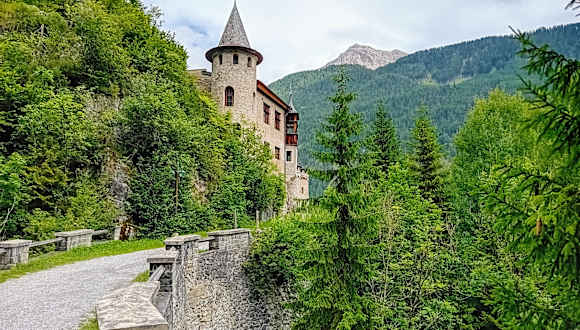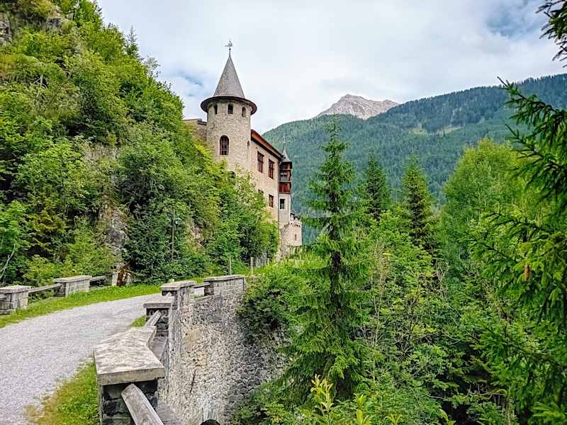 Auf der Fenrpassstraße in Richtung Süden kommt man ca. 200 m nach einer 180 Grad Kurve an drei Stellen vorbei, für die sich ein Anhalten lohnt. Links der blaugrüne Fernsteinsee, dann ein Cafe mit Souvenirshop und rechts ein kleines schönes Schloss, das oberhalb des gleichnamigen Hotels fast in den hohen Tannen verschwindet. Es wurde erstmals 1519 urkundlich erwähnt und es lohnt sich kurz auf dem Parplatz des Cafes anzuhalten und vielleicht ein Foto von dem Schloss zu machen.