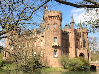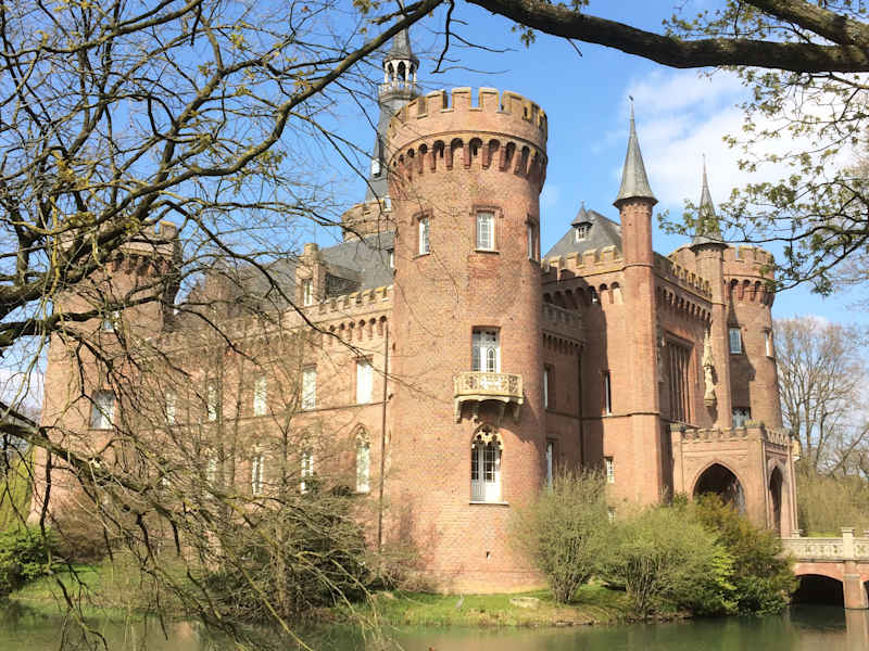 Der Name des Schlosses leitet sich von dem niederländischen Wort Moiland ab, was „Schönes Land“ bedeutet. Und diesem Namen wird das Schloss in der Tat gerecht. Die Geschichte des im neugotischen Stil erbauten Wasserschlosses geht auf das 13. Jahrhundert zurück und ist Ausdruck der engen deutsch-niederländischen Verflechtungen in dieser Gegend. Das aus Backstein errichtete Schloss mit seinem Bergfried genannten Rundturm und drei weiteren halbrunden Türmen ist heute wieder eine beeindruckende Sehenswürdigkeit, nachdem der Bau im 2. Weltkrieg durch Raub und Vandalismus und dann in den 1950er Jahren nach einem Brand stark in Mitleidenschaft geworden worden war. 1987 begann die Instandsetzung und eine Stiftung Museum Schloss Moyland übernahm die Restaurierung und den Ausbau des Schlosses. Heute beherbergt das Schloss ein Museum für moderne Kunst und ist umgeben von einem sehr gepflegten Park.