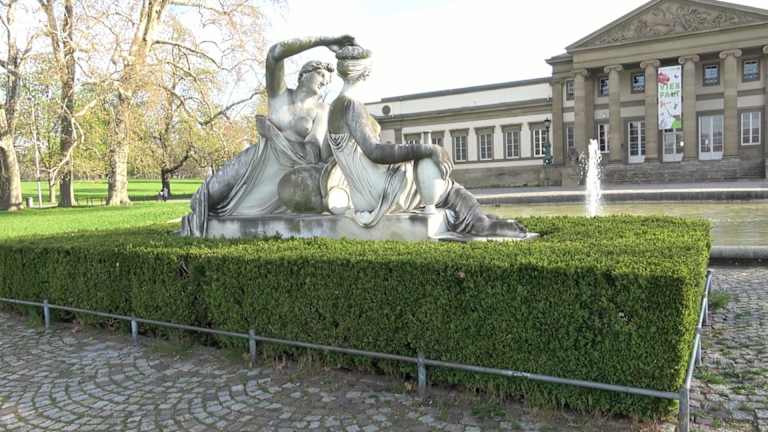 Der Springbrunnen im Rosengarten befindet sich vor dem Schloss. Es ist ein großes, rundes Becken. In der Mitte ist der Springbrunnen. An der Seite zum Schloss ist eine große Skulptur mit zwei Frauen, die Wasser- und Wiesennymphe. Adresse: Rosenstein 14, 70191 Stuttgart Geodaten: R624+35 Stuttgart