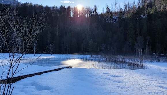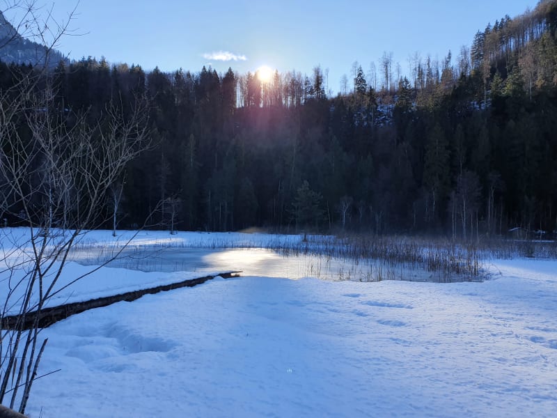 Wunderschön gelegener NAtursee in der Nähe von den Königsschlössern und dem Alpsee. Der See ist ganz so zugänglich wie der Alpsee, aber auch hier wird im Sommer gebadet und im Winter kommt der Schlittschuhlauf. Sehr romantisch.