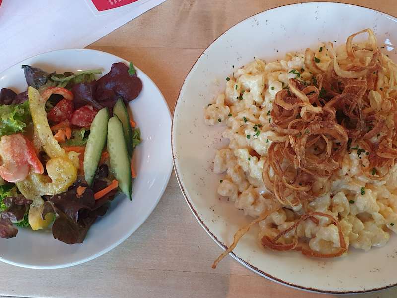 Besuch: Montag, 24. Juni 2024 abends (ohne Reservierung) An diesem Urlaubstag, in der Region, waren wir zuvor in München unterwegs und wollten auf dem Rückweg nach Erding mit dem Zug/Bus, ein Restaurant besuchen, welches nicht so touristisch überlaufen war, aufgrund der zum Zeitpunkt stattfindenden Fußball-EM. Es war unser Glück, dass der eigentliche Zug, komplett überfüllt war und wir in einen Nachfolgezug eingestiegen waren, welcher als nächster Halt "Markt Schwaben" hatte. In der Kürze der Zeit haben wir uns dann entschieden, das Schweiger Brauhaus einmal zu besuchen, um dort zu speisen. Das Schweiger Brauhaus hat eine über 80-jährige Tradition in Markt Schwaben und wurde 1934 eröffnet. Nach verschiedenen Inhabern in den Jahren, ist seit 2013 der jetzige Wirt im hiesigen Brauhaus Inhaber. Im Innern des Brauhauses ist dieses mit dunklem Holz eingerichtet und dieses wirkt einzigartig, gegenüber anderen Brauhäusern, wie man sie kennt. Ebenso ist ein Biergarten vorhanden, unter Bäumen, mit Blick auf die Braukessel der Privatbrauerei. Nach der Begrüßung durch das Personal, wurden wir zunächst gefragt, ob wir draußen oder drinnen sitzen wollten und wir uns für drinnen entschieden hatten, da draußen, sehr viel reserviert war. Bestellung: > Cola Weizen 0,5l für 4,90 € > Radler Naturtrüb 0,5l für 4,50 € > Russ'n Halbe 0,5l für 4,60 € > Tafelspitzbrühe mit Grießnockerl für 7,50 € > Zarte Schweinefiletmedaillons auf Rahmschwammerl mit hausgemachten Spätzle aus frischen Bauerneiern für 21,50 € > Hausgemachte Käsespätzle mit Röstzwiebeln und kleinem Beilagensalat für 16,50 € > Kleine bunte Salatvariation mit Dressing nach Art des Hauses für 6,50 € Die Servicekraft hat beim Bringen der Speisen an den Tisch, den Beilagen- bzw. den kleinen bunten Salat vertauscht und der falschen Person zunächst hingestellt. Dies ist ihr dann in Folge noch aufgefallen und sie hat ihren Fehler korrigiert - sollte aber so nicht passieren. Das Essen war soweit gut, die Röstzwiebeln waren selbstgemacht und zusammengefasst, war der Gesamtbesuch gut und wir konnten unsere Reise gut gesättigt fortsetzen.