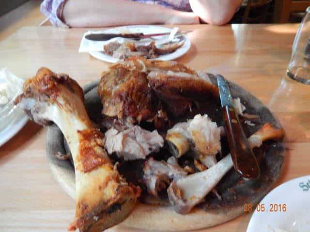 Ich war in diesem Restaurant im Juli 2017. Ich bestelle eine Stelze mit einem Preis von 18 Euro pro kg. Vom Gewicht steht natürlich nichts auf der Karte. Die Stelze sah super aus, geschmacklich aber schlecht. Neben den Tischen sass einen Nebelkrähe auf dem Baum und verrichtete ihr Geschäft. Einfach unappetitlich! Das Brot kostet nochmals 2 Euro extra und die Toilette kostet zusätzlich.