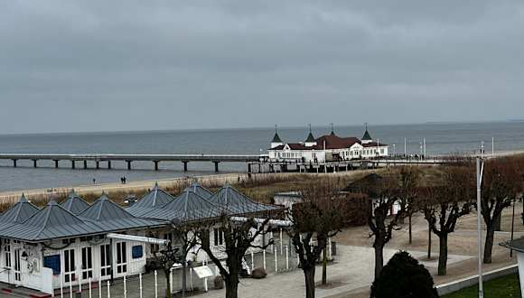 Speisen auf einer Seebrücke? In Ahlbeck ist das möglich. Lauft über die Seebrücke zum Lokal und von dort aus weiter auf der Seebrücke entlang. Überall sind Bänke zum ausruhen. !Parkplätze sind in der Ecke knapp!