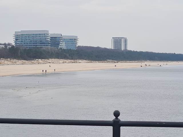 Flanieren, sehen und gesehen werden – dafür ist die 395 Meter lange Seebrücke von Miedzyzdroje / Misdroy ein guter Ort. Wenn hier die Ausflugsschiffe und Fähren / Linienboote (z.B. von den deutschen Ostseeorten auf Usedom) ankommen, ist hier meist sehr viel Betrieb (und teils auch Hektik). Wenn jedoch dieserr Ansturm vorbei ist, wird es wieder spürbar ruhiger. Dann kann man auch den schönen Ausblick auf den Ort, die Küste und auf die Ostsee genießen. Am Abend – bei schönem Sonnenuntergang - kann es hier dann sehr romantisch werden.