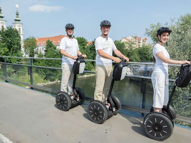 Mit dem Segway auf Touren kommen! Segway Touren in Graz  Als erster Anbieter von SEGWAY-Touren in Graz startet SEGYtours seit dem Jahr 2013 voll durch! Denn mit SEGYtours gibt es in Graz für Sie eine zusätzliche Attraktion: Eine neuartige Möglichkeit, die steirische Landeshauptstadt und ihre zahlreichen Sehenswürdigkeiten und Highlights zu erleben, und zwar lärmfrei, emissionsfrei und feinstaubfrei.    Sehenswürdigkeiten bei unseren Segway Touren  Wir bringen Sie sicher und mit einem hohen FUN-Faktor durch die Grazer Altstadt, an den Schloßberg und zeigen Ihnen den Uhrturm von seiner besten Seite. Auch Kunsthaus, Murinsel, Schloss Eggenberg, Joanneumsviertel, Hautplatz, Rathaus, Landhaus, Grazer Burg, Dom, Mausoleum und andere Highlights stehen auf unserer "Speisekarte".    Segway Touren für Firmen  Auch für Firmen sind wir die idealen Ansprechpartner, denn wir bieten Ihnen Komplettpakete für aufregende Präsentationen, unvergessliche Incentives oder kurzweilige Firmenfeiern.    Segway Erlebnis Graz  Wenn Sie einen Ausflug nach Graz planen, ist eine Segway-Tour eine optimale Ergänzung. Neben der eleganten Art der Fortbewegung erzielen wir auch weite Strecken, wodurch Sie viel von Graz sehen und erleben können!    Segway + Stadtführung  Als ganz besonderes Zuckerl bieten wir Ihnen gerne auch die Kombination aus Stadtführung und Segway-Erlebnis an: In unserer dreistündigen City-Tour mit einer staatlich geprüften Fremdenführerin!