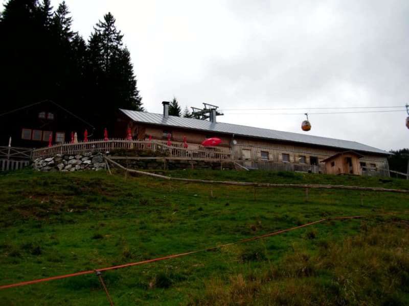 Die Alpe liegt unweit der Mittelstation der Hörnerbahn Bolsterlang ca. 1.390 Meter ü. NN. Nach dem Aufstieg gönnte ich mir wie im Vorjahr ein Stück schmackhaften Heidelbeerschmandkuchen. Man sitzt draußen und hat eine tolle Aussicht über das Illertal. Der Obstler war günstiger als in manchen Lokalen im Tal. Und man kann dort hergestellten schmackhaften Käse kaufen, in verschiedenen Reifegraden und nicht nur "Natur" sondern auch mit Chili. Ich bin von dort einen Weg entlang gewandert, der am Hang entlang führte und teilweise schöne Ausblicke bot, bis nach Obermaiselstein.