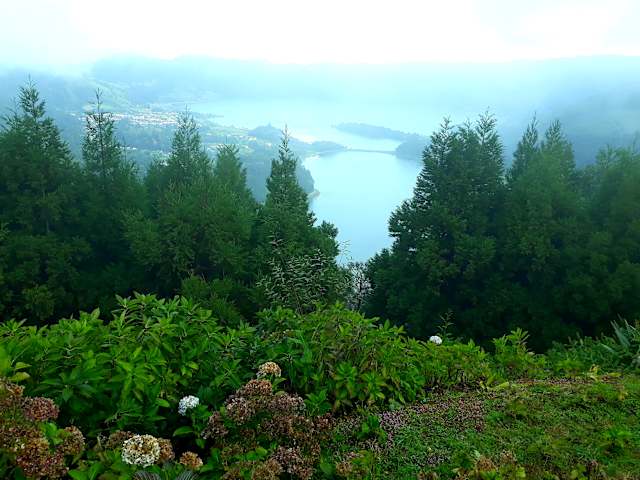 Sind vom Vista do Rei runter zu den Seen gewandert. Steil aber schön. Einfach umwerfend der Krater von Sete Cidades.