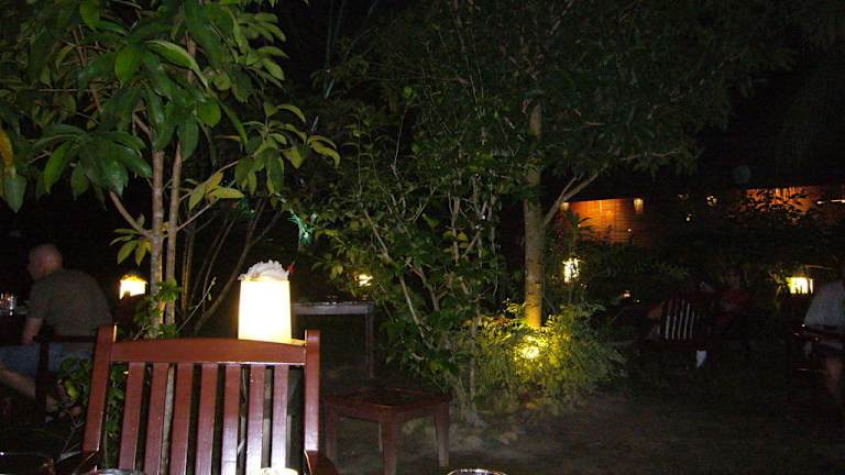 Sheela's ist ein kleines Restaurant mit Tischen unter den Bäumen, sehr schön beleuchtet, mit einer wunderbaren Atmosphäre. Die angebotenen Gerichte schlagen einen Bogen zwischen Malaysia und Europa, sind sehr geschmackvoll und toll angerichtet, dazu gibt es gute Weine. Unsere Gastgeberin nimmt sich sehr viel Zeit für ihre Gäste . Wird man von einen Regenschauer überrascht, ist das auch kein Problem, denn im Nu ist das Gartenrestaurant auf die Terasse umgezogen um man lauscht dem Trommeln der Regentropfen bei einem weiteren Glas Rotwein oder einem Espresso.