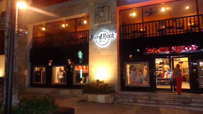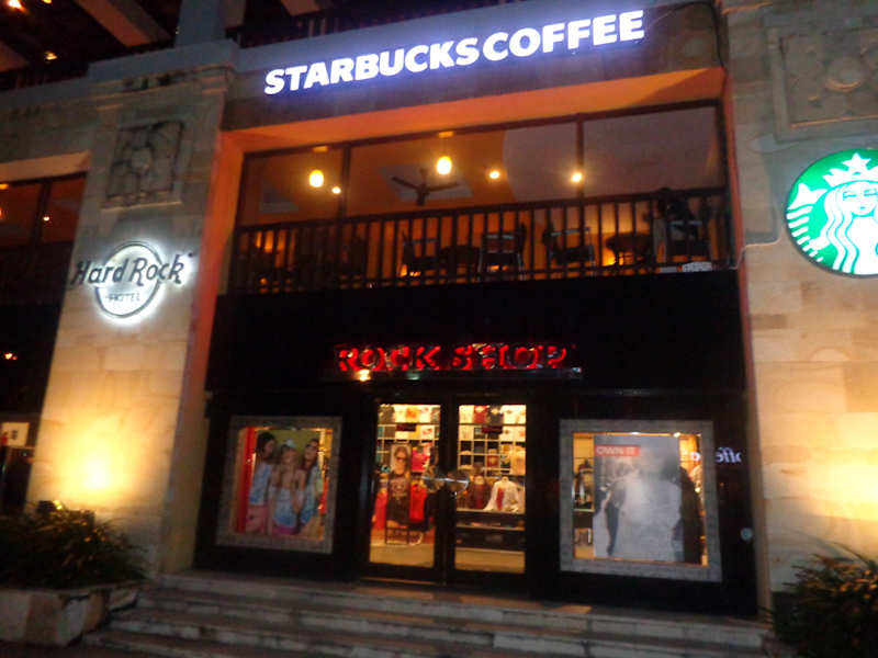 Den Shop des Hardrock Hotels findet man,wenn man durch Kuta Square läuft ( gleich hinter Poppies One ) und dann links in Richtung Strand.In diesem Haus befindet sich auch Starbucks,es ist nicht zu übersehen,da sich auch wie immer Gitarren vor dem Eingangsbereich befinden.Ich muß dazu sagen,daß wir „Hardrock Fans“ sind und egal wo sich auch ein Hardrock Cafe befindet,wir dieses auch besuchen und Shirts und Souveniers kaufen.Da ich deshalb auch schon unzählige Shops gesehen habe,muß ich einfach sagen toll.Die Auswahl in diesem Shop ist enorm groß.Haben bei der jetzigen Reise insgesamt sechs Hardrock Cafes besucht,aber nur hier die neue Collection bekommen.Der Shop ist sehr groß,alle Sachen sind gut geordnet,alles sehr übersichtlich.Die Preise sind in allen Hardrock Shops gleich.Shirts z.B. von 15-20 Euro im Angrebot,alle anderen zwischen 30-40 Euro.