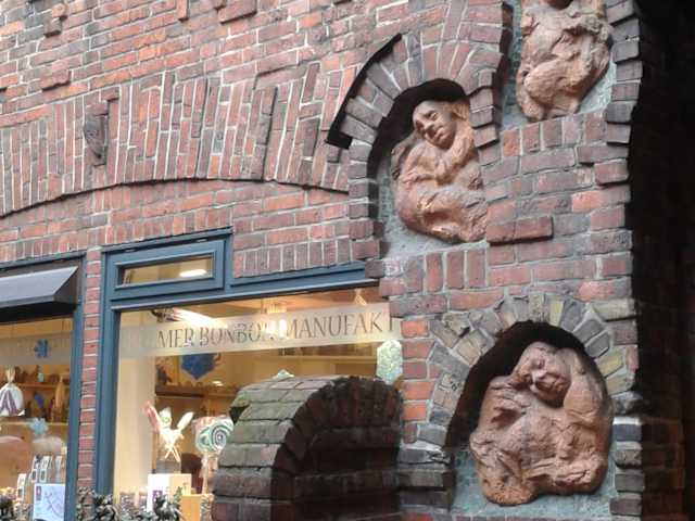 Im Handwerkerhof der Bremer Böttcherstraße findet sich mit dem „Sieben-Faulen-Brunnen“ ein kleines Meisterwerk des Bildhauers und Architekten Bernhard Hoetger, der das Ensemble um 1930 im Rahmen seiner Neugestaltung der Gasse schuf. Im Stil des Expressionismus und in dem typischen roten Backstein finden sich an der Frontseite des Brunnens die „Sieben Faulen“ – Söhne eines Bauern, die wegen ihrer Faulheit keine Arbeit fanden, in die Welt zogen und mit innovativen Ideen später Land und Hof des Bauern zur Blüte führten, dabei jedoch weiterhin von den Bremern verkannt wurden. Auf dem Auslauf des Brunnens stehen in der Reihe die Bremer Stadtmusikanten und wer sich mit Hoetgers Plastiken beschäftigt, erkennt auch im „Sieben-Faulen-Brunnen“ die unverkennbare Stilrichtung des Bildhauers, dessen Werke unter den Nationalsozialisten als „entartete Kunst“ geschmäht wurden. Der Besuch des Brunnens lässt sich prima mit einem Abstecher in die „Bonbon-Manufaktur“ verbinden, die direkt hinter dem Kunstwerk buntes Zuckerwerk vor den Augen der Zuschauer herstellt.