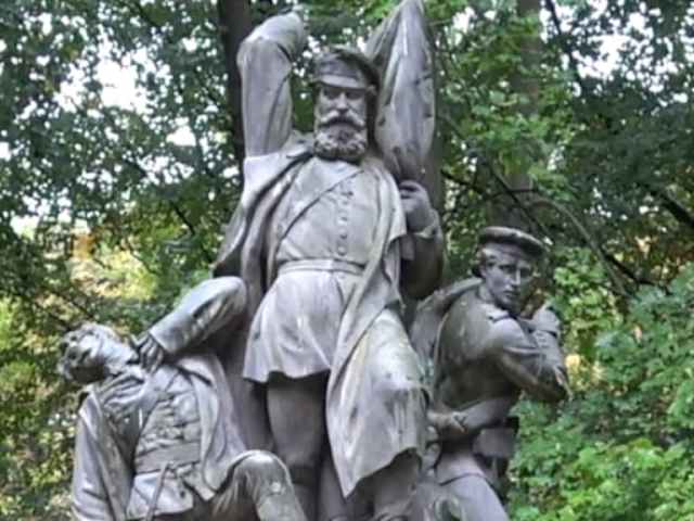 Die Dreifigurengruppe "Der Kampf - Schanzenerstürmung" steht seit 1939 an der Rüsternallee im Großen Tiergarten. Sie wurde zwischen 1864 und 1874 von dem Bildhauer Rudolf Schweinitz geschaffen und zunächst 1874 auf dem Alsenplatz in der Nähe des Reichstages aufgestellt. Im Zusammenhang mit Umgestaltungen wurde das Sandsteinmonument 1939 an seinen neuen Standort versetzt.