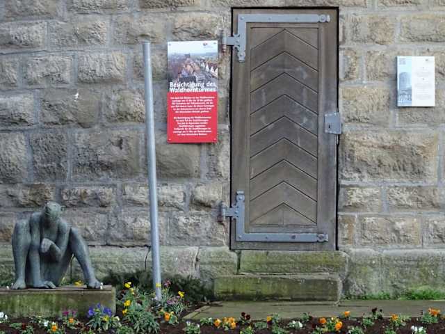 Skulptur direkt vor dem Waldhornturm