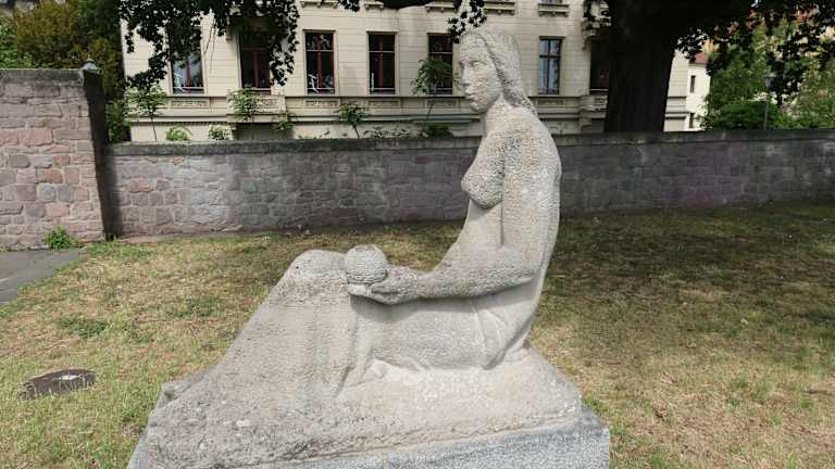 Die sitzende Elektra mit einer Kugel in der Hand, die sich am Fürstenwall in Magdeburg befindet, stammt von 1950-1951. Es ist eine durchaus schöne Steinfigur, die man sich auch einmal anschauen sollte, zumindest dann, wenn man am Fürstenwall unterwegs ist.