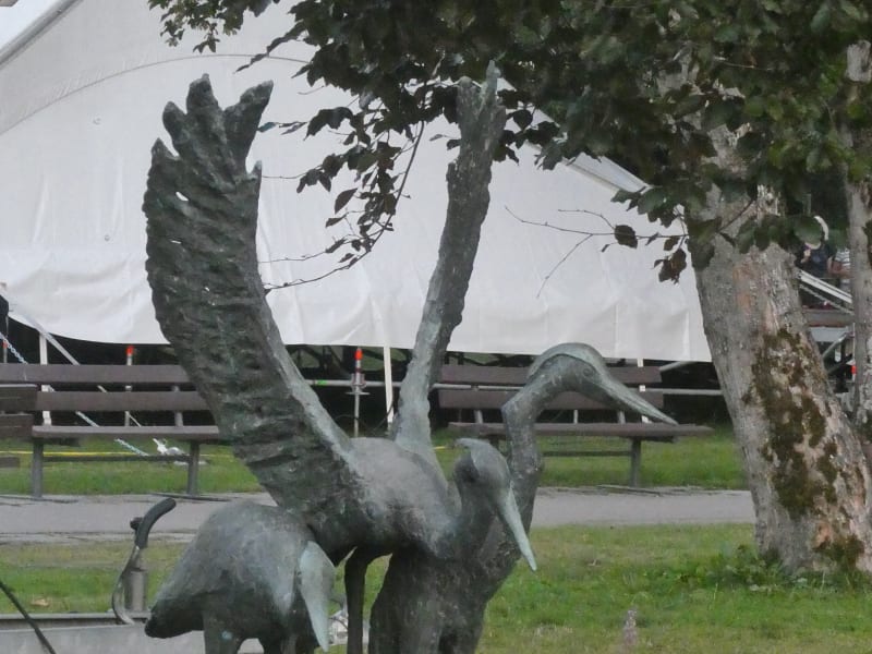 Im Kurpark von Oberstdorf steht eine schöne Skulptur von Walter Kalot. Er war ein deutscher Bildhauer, Grafiker und Maler. Die drei Fischreiher stehen am Uferrand eines kleinen Teiches. Erstellt wurden sie 1967.
