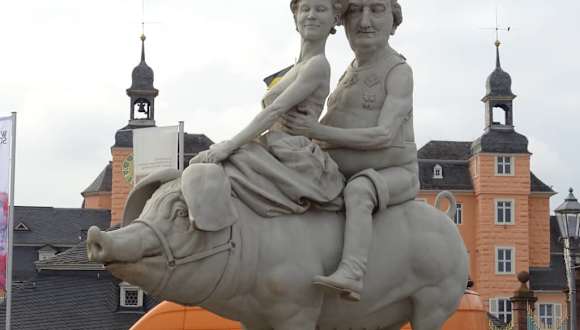Auf der Schlossstrasse, das dicke hyperdimensionale Schwein mit Karl Theodor und seiner Geliebte ist ein Foto wert. Soll Glück bringen.