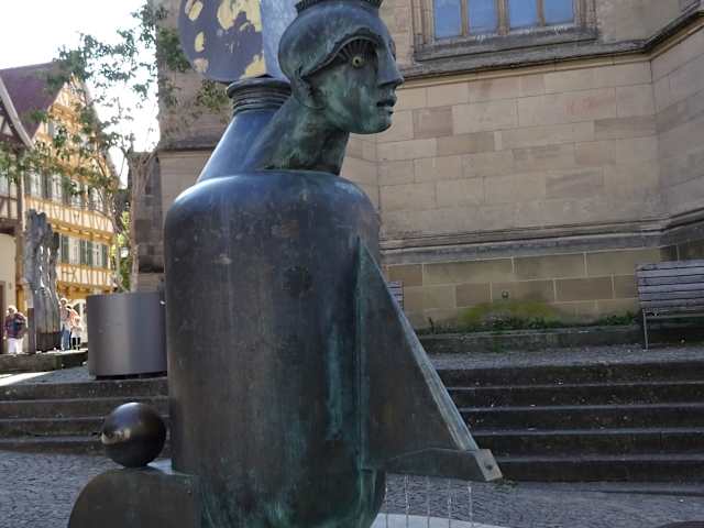 In der Altstadt von Schorndorf findet man viele Skulpturen. Da wir im Rahmen einer Stadtführung in Schorndorf unterwegs waren, wurden uns dabei auch einige Skulpturen gezeigt und erläutert. Ohne die Hinweise wären wir vielleicht an einigen einfach vorbei gelaufen, da nicht überall lesbare Tafeln mit Informationen vorhanden sind. Bei entsprechendem Interesse sollte man sich daher evtl. zuvor kundig machen.