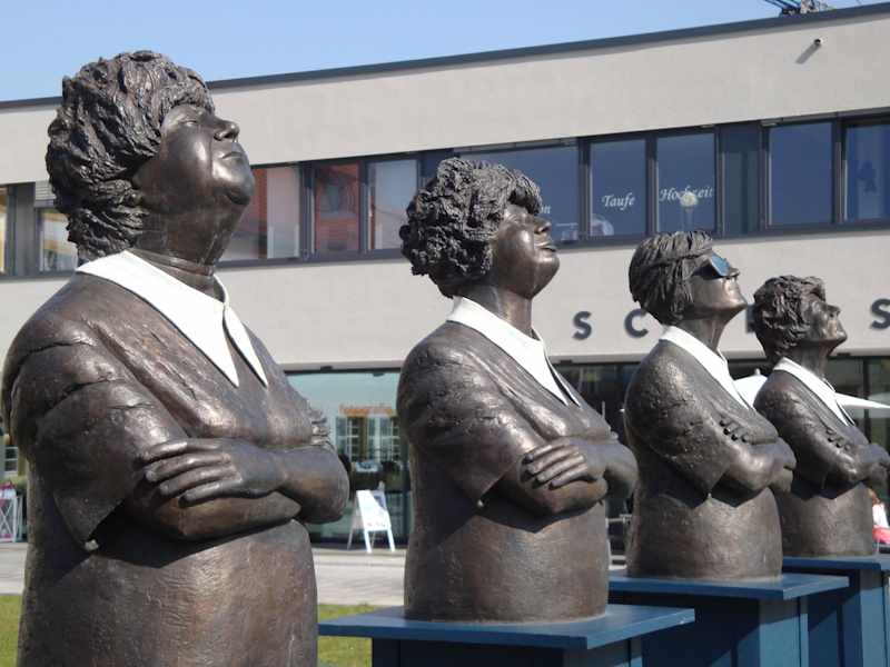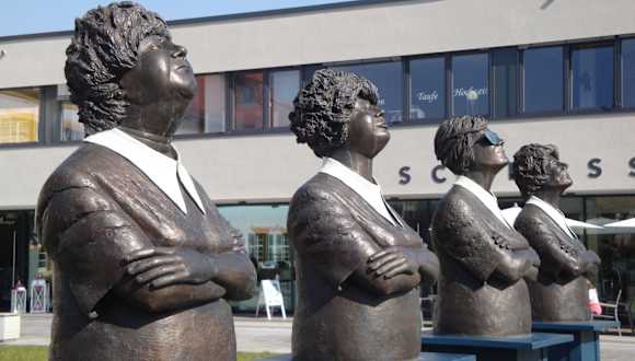 Vor dem Rathaus in Rechberghausen demonstrieren 5 Skulpturen die EINHEIT unter den Waschfrauen, nämlich Persil bleibt Persil. Ach ja, in diesem Rathaus kann man zu jedem Datum und zu jeder Uhrzeit heiraten, das wäre doch für viele gerade recht??? Und noch etwas gibt es in Rechberghausen, zur Karnevalsz....... verzeihung, zur Faschingszeit bewundern hier tausende den originellen Faschingszug, das neiden viele Gemeinden den Hausener.