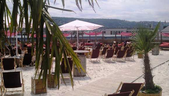Auf dem Parkhaus Dach des 'Galeria Kaufhof' am Stuttgarter Hauptbahnhof. Sehr schön zum Abends entspannen mit super Blick über Stuttgart. Es gibt Cocktails und Flammkuchen (recht teuer!). Leider gibt es keine Möglichkeit Stühle zu reservieren. Man kann nur die Betten reservieren zu einem Mindestverzehrumsatz von 50 € reservieren. Das ist etwas schade. Sonst absolut zu empfehlen!