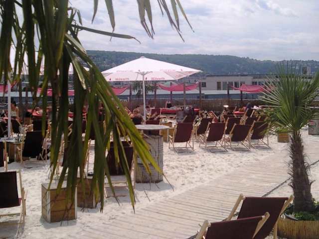 Urlaubsfeeling nach dem Feierabend. Ich finde die Idee toll, dass hier ein Dach zum künstlichen Strand umfunktioniert wurde. Am Wochenende kann es hier jedoch schon mal eng werden. Die Atmosphäre finde ich einmalig.