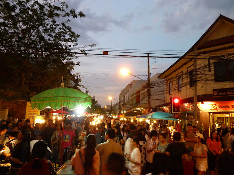 Grosser Markt im Zentrum von Chiang Mai. Startet um etwa 17h00 und ist gut besucht. Kein Alkohol und keine Rauchen erlaubt. Neben den üblichen Fabriksouveniers gibt es auch handwerkliche Sachen, wesenlich breiteres Angebot als z.B. auf dem Nachtmarkt. Auch viel streetfood erhältlich, man findet sogar geröstete Insekten.