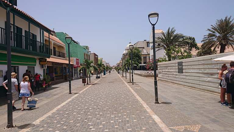 Auf der Insel Sal (sonnenreichste Insel der Kapverdischen Inseln) befinden sich die meisten der Hotelanlagen in Santa Maria bzw. unweit von Santa Maria. (entweder fährt man mit dem Taxi ab Hotels für 300 Escudos bzw. 3 EUR) oder geht zu Fuß im hinteren Bereich der Hotel auf der gepflasterten kleinen Strandpromenade. Bereits auf der Strandpromenade sind zahlreiche Straßenhändler, die touristische Artikel, Souveniser, Uhren, Sonnenbrillen u. Kleidung, Tücher anbieten. Ferner befinden sich in der kleinen Fußgängerzone und benachbarten Straßen diverse kleinere Läden und Shops.