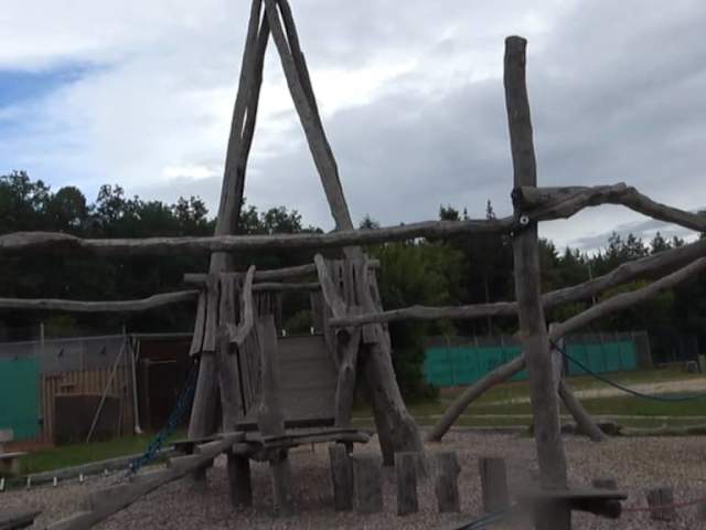 Der Spielplatz liegt neben dem Beachvolleyballfeld und dem Vereinsheim. Er besteht aus einem großen Holzbau. Verschiedene Spielmöglichkeiten sind da verbunden. Ein großer Reifen lädt zum Schaukeln ein. Am Gerüst kann man klettern, oder balancieren.