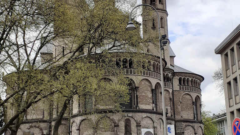 Die dreischiffige römisch-katholische "Basilika St. Aposteln", eine der zwölf noch erhaltenen romanischen Kirchen Kölns, steht zwischen der Hahnenstraße und der Mittelstraße am westlichen Ende des Neumarktes in der Innenstadt. Das seit dem 11. Jahrhundert bestehende Gotteshaus hat im Laufe der Jahrhunderte zahlreiche Veränderungen erfahren. U.a. wurde im späten 12. Jahrhundert die Ausrichtung des Gotteshauses im Rahmen einer Erweiterung von Westen nach Osten verschoben, um es den liturgischen Praktiken anzupassen. Die Kirche zeichnet sich durch eine besonders große Dreikonchenanlage aus, in die zwei flankierende Osttürme integriert sind. Ihnen gegenüber steht der etwa 67 Meter hohe Westturm. Besonders sehenswert sind der überkuppelte Kleeblattchor, der um 1200 erbaut wurde, der Vierungsaltar, die Krypta sowie verschiedene Skulpturen und Ölgemälde. Homepage: https://www.st-aposteln.de