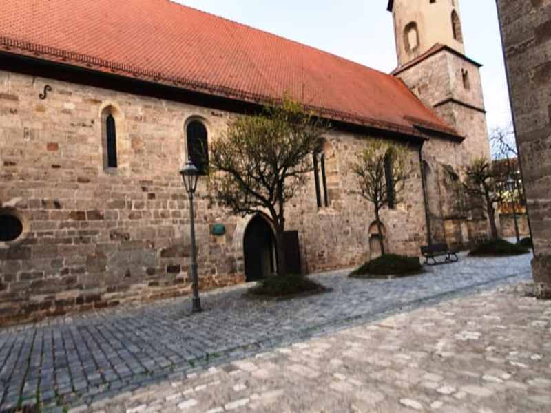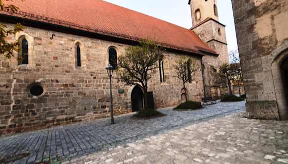 Die St. Johannis-Kirche liegt nur wenige Schritte entfernt der Stiftskirche und das ist schon ungewöhnlich und war vormals Taufkirche des einstigen Königshofes wie es an der Tafel angeschrieben ist. Erbaut im Jahre 1257 und im 14. Jahrhundert erweitert, sie ist eine Evang.-Luth. Kirche. Der Chor wurde mehr schlicht gehalten und hat einen barocken Altar. . Adresse: Kirchpl. 1 91555 Feuchtwangen, Deutschland . Telefon: +49 9852 90820 . Interent: www. dekanat-feuchtwangen. de/ feuchtwangen