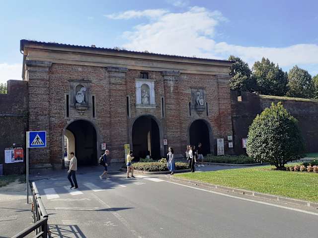 Die Mauern von Lucca 4 km lang zählen zu den größten in Europa, erste Urspünge um 180 vor Ch. von Römern erbaut, Baubeginn 1504 Ende 1648, um die Republik Lucca zu schützen gegen Expansion von Florenz und Großherzogtum Toskana