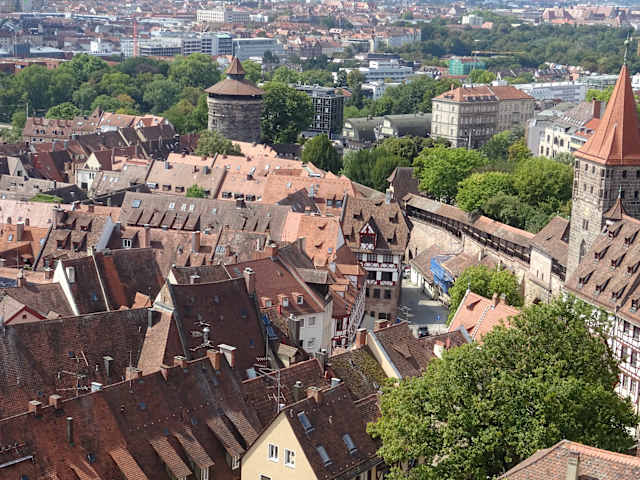 Man geht heute davon aus, dass Nürnberg bereits im 11. Jahrhundert bereits eine erste Stadtbefestigung hatte. Im 13. Jahrhundert waren die Stadtteile Sebald und Lorenz von getrennte Stadtmauern umgeben. Anfang des 14. Jahrhunderts erhielten diese beiden Stadtteile über die Pegnitz hinweg eine gemeinsame Stadtbefestigung. Die sogenannt letzte Stadtmauer wurde um das Jahr 1400 fertiggestellt. Diese letzte Stadtmauer hatte eine Länge von ca. fünf Kilometer und verfügte an den vier Ecken über jeweils eine Turm. Heute umgibt die zum Teil renovierte und teilweise wiederaufgebaute Stadtmauer nahezu die gesamte Altstadt.