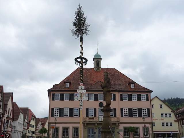 Am Marktplatz findet man das im 18. Jahrhundert errichtete Rathaus mit schönem gusseisernem Balkongeländer aus dem 19. Jahrhundert . Das ursprüngliche Rathaus aus dem 16. Jahrhundert wurde beim Stadtbrand 1765 zerstört. Murrhardt erhielt im 13. Jahrhundert das Stadtrecht.