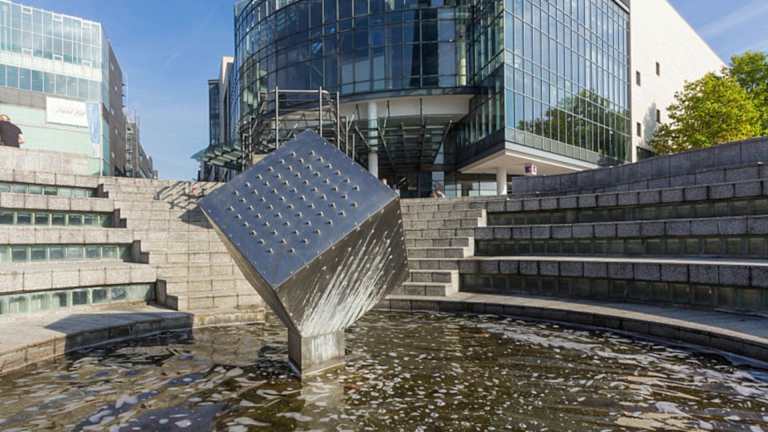 Ein sehr schöner Brunnen befindet sich in der Mitte des Mediaparks. Entworfen wurde die Anlage 1992 von Otto Piene. Die Anlage soll ein römisches Amphitheater darstellen. Zehn flache Wasserbecken, darüber Kaskaden von denen das Wasser in ein tiefer gelegenes Hauptbecken fließt. In der Mitte des Beckens ist ein großer, metallener Würfel, welcher auf einer seiner Spitzen steht. Adresse: Im Mediapark 11, 50670 Köln Geodaten: WWXV+5P Köln