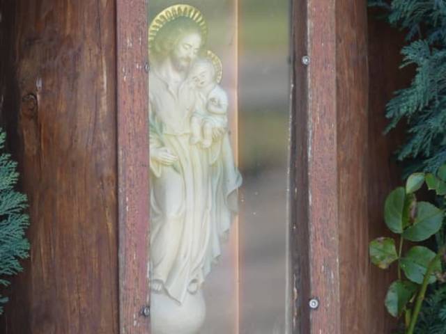 Östl. des Marktes Pfaffenhofen a.d. Roth befindet sich das große Areal der „Gebetsstätte Marienfried“. In dem darin befindlichen Gebetspark steht ein von zwei hohen Büschen eingerahmter Baumstamm mit Giebeldach der eine Statue des Hlg. Josef hinter Glas beinhaltet. Der Hlg. Josef trägt das kleine Jesuskind auf dem Arm. Marienfriedstr. 62 89284 Pfaffenhofen