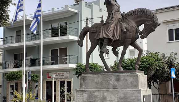 Das Denkmal an der Leof. Grigoriou V stellt Theodoros Kolokotroni dar, der ein griechischer Freiheitskämpfer und Partisanenführer war und ab 1821 im Unabhängigkeitskriegs gegen die Herrschaft des Ottomanischen Reiches kämpfte.