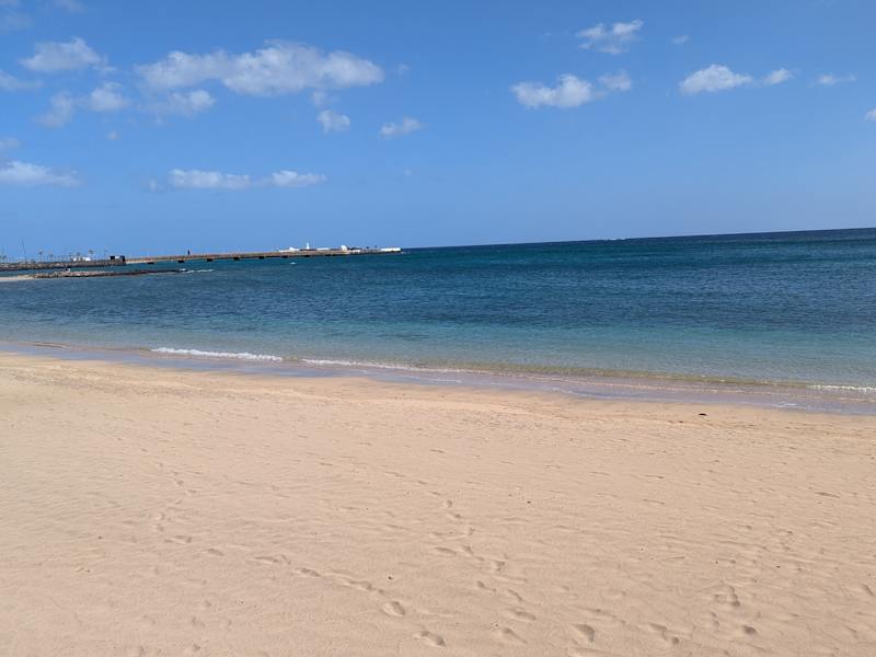 Wir waren auf Lanzarote in Urlaub und in Arrecife am Strand mit Palmen, klein aber sehr schön, es geht flach ins Meer, die Wassertemperatur ist ca. 20°C - 21°C. Uns hat es sehr gut gefallen und deshalb empfehlen wir dieses sehr schöne Ausflugsziel weiter.