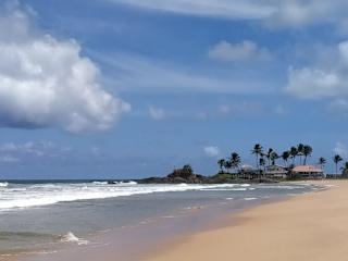 Innerhalb von zwei Jahren bin ich nun zum zweiten Mal am gleichen Strand - wenn auch in einem anderen Hotel. Dieser sehr ruhige lange und öffentliche Sandstrand ist ca. 2- 3 km lang und verläuft von von Ahungalla bis zur nächsten Ortschaft Balapitiya. An ihm liegen einige, wenige Hotels - von wenigen Zimmern bis zu 500 Zimmern (RIU Hotel). Trotz der Tatsache, daß das Heritance und das Riu zusammen immerhin ca. 650 Zimmer aufweisen, ist der Strand an großen Abschnitten menschenleer. ! Die Strandverkäufer (allerdings wenige) sind zwar immer wieder auf der Suche nach neuen Kunden, sind aber verhältnismäßig wenig aufdringlich. Der Strand ist goldgelb und für einen öffentlichen Strand wirklich sehr sauber. Die Oberfläche des Sandes ist meist schön hart, sodaß man sehr gut am Strand spazieren gehen kann! Ebenso gibt es einige kleinere Strandrestaurants wie das White Villa Resort und die Jungle Beach Bar mit guter, günstiger Küche. Eine überzeugte Empfehlung!