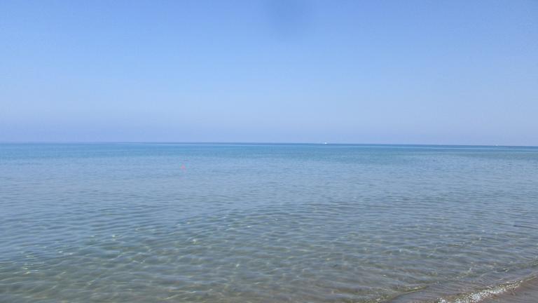 Langgezogener schöner Sandstrand. Toller Ausblick auf die Altstadt.