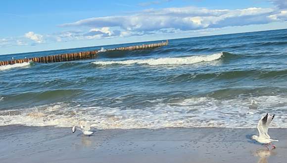 Ein sehr schöner, breiter Strand. Kein Schlick und sonstiger Unrat wie vielfach an der deutschen Ostsee. Sehr sauberes Wasser!!!