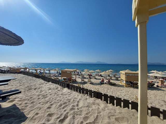 Wir waren in Mastichari und haben dort den schönsten Strand von Kos gefunden. Der Strand ist dort sehr lang und sehr sauber. Es gibt verschiedene Anbieter für Liegen und Sonnenschirme inkl. WLan :-) Es gibt zahlreiche kleine Restaurants und Shops mit den üblichen Souvenirgeschäften. Es ist alles sehr sauber. Hier hat es uns besonders gut gefallen. Allerdings ist hier in den Restaurants der Preisspiegel etwas gehoben und die Qualität leider nicht so besonders. Also da haben wir im Ikaros in Tigaki die Hälfte für das gleiche Essen bezahlt. Aber es lohnt sich hier einen Stop alleine für den Strand einzulegen.
