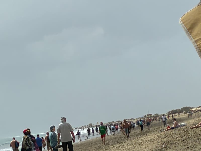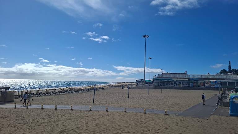 Der Strand von Playa del Ingles ist sehr groß und feinsandig. Leider ist er mit Liegen und Sonnenschirmen zu gepflastert, dass man vom Sand nicht mehr viel sieht. Möchte nicht wissen wie es hier im Hochsommer zugeht. Leider ist auch das Verhalten bestimmter Personengruppen nicht für Familien besonderen mit Kindern geeignet. Auch finde ich den öffentlichen übermäßigen Alkoholkonsum nicht von Vorteil.