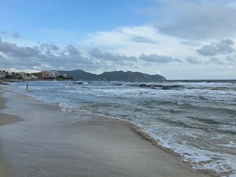 Direkt in Porto Cristo befindet sich ein kleiner Stadtstrand, der nur ca. 300 Meter lang ist. Bei unserem Besuch im Februar in Porto Cristo war der Strand wetterbedingt nahe zu menschenleer (zum einen war es recht kühl, denn es war ja noch Winter, zum anderen war es sehr stürmisch und regnerisch). Aber im Sommer ist der ´kleine Sandstrand ein beliebter Familienstrand und recht überlaufen.