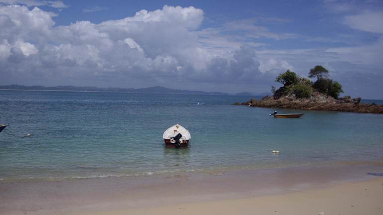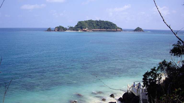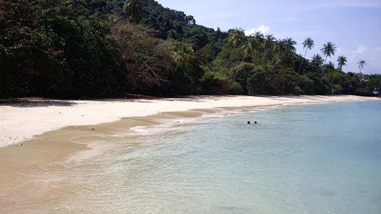 Pulau Kapas liegt nur etwa 6 km vom Fährhafen Marang entfernt. Für einen Tagesausflug ist sie sehr zu empfehlen. Man kann vom Anleger aus linker Hand an der Küste entlangwandern und passiert unterwegs mehrere schöne Strände.