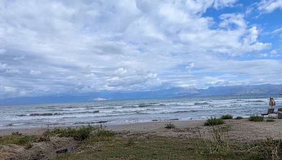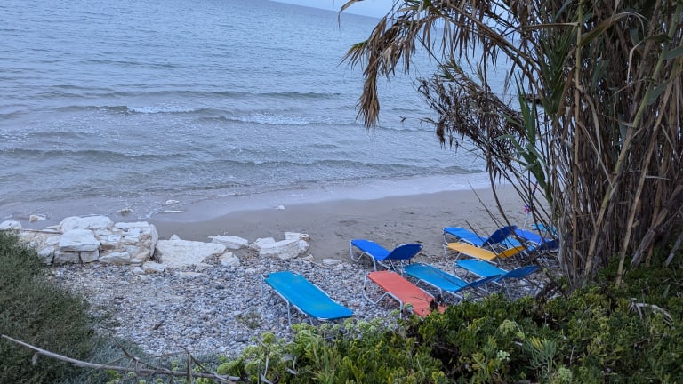 Wenn man von der kleinen Brücke am westlichen Ortsausgang aus westlich (also links/ortsauswärts) am Strand weitergeht findet man schöne kleine Liegeplätze im Sand für 2-4 Personen mit genügend Abstand zum Strandnachbarn, weil dazwischen immer wieder alles bewachsen ist. In der Vorsaison eine angenehm ruhige Ecke. So viele Fußgänger sind da noch nicht direkt vor einem am Strand langgelaufen. (Fotos hab ich auch eingestellt) An der Straße nach der Ortsausgangs-Brücke findet man den Reit-Tour-Anbieter Costas Horse Riding. Unter der Brücke sind viele Wasserschildkröten zu beobachten.