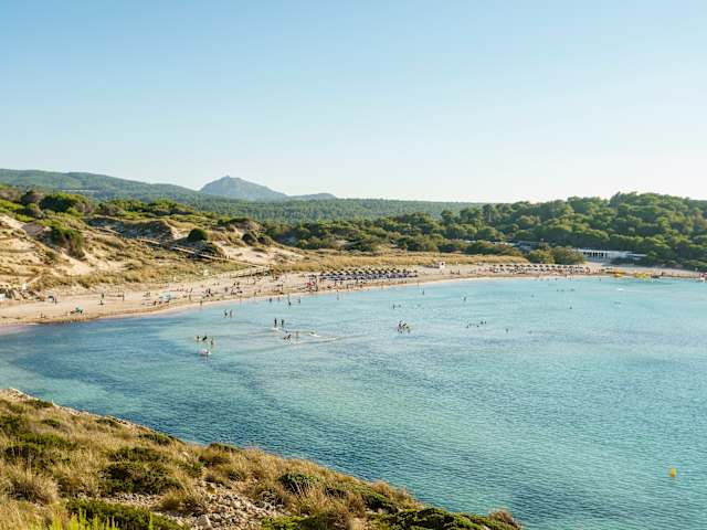 Wir sind Mitte Juli extra mit dem Auto hierhergefahren und waren doch ziemlich enttäuscht; das Wasser war nicht besonders sauber, eher milchig, und viele Jachten und Bötchen riegelten den Ausgang der Bucht zum Meer fast ab. Da haben wir auf Menorca schon schönere Strände gesehen!