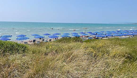 Also der Strand entlang der Küste zwischen Vada und Rosignano Maritimo ist zwar sehr schön aber es ist wie bekannt nicht natürlichen Ursprungs. Der Strand ist wahrscheinlich etwa 1 km lang und hat die türkisfarbe der Karibik in vielen Facetten. Es sieht wirklich wunderschön aus. Der Sand ist wirklich weiss. Das Wasser am Strand jedoch ist nicht klar wie oft beschrieben sondern hat eher Waschmaschinenwasser Konsistenz, also trüb und weiss. Der Grund dieser Landschaft liegt einfach am hinter den Dünen liegenden Fabrik Namens Rosignano Solvay, welcher seit ca. 1914 dort Soda (also Bleichmittel) produziert. Am Anfang des Strandes gibt es direkt einen Kanal vom Meer mit kristallklarem Wasser der in die Fabrik führt und in der Mitte des Strandes läuft eben der Abwasserkanal direkt wieder ins Meer, diesmal aber eben wie Waschmaschinenabwasser, also komplett milchig. Was drinn ist weiss nur der liebe Gott und der Fabrikbesitzer. Also diese Abwässer haben den Strand komplett gebleicht und über die Jahrzehnte komplett weiss gefärbt. Nun es waren hauptsächlich Italiener da die sich auch bedenklos im Wasser aufgehalten haben. Das haben wir auch und ausser der Farbe gabs keine besonderen Merkmale, ein mulmiges Gefühl aber blieb doch. Muss jeder für sich entscheiden ob es gut oder schlecht ist. Komisch jedoch war, dass am ganzen Strand keine einzige, wirklich keine einzige Muschel zu finden war. Mein Sohn und ich haben an allen Stränden danach gesucht und wurden überall fündig aber hier leider NICHTS!! Komisch ist es schon!! Uns hats trotzdem als Tagesreise sehr gut gefallen. Übrigens in 5 Minuten Fussweg gibt es ein Strandrestaurant wo man Imbiss bekommt aber auch gut am Tisch hauptsächlich mit Fischgerichten bedient wird.