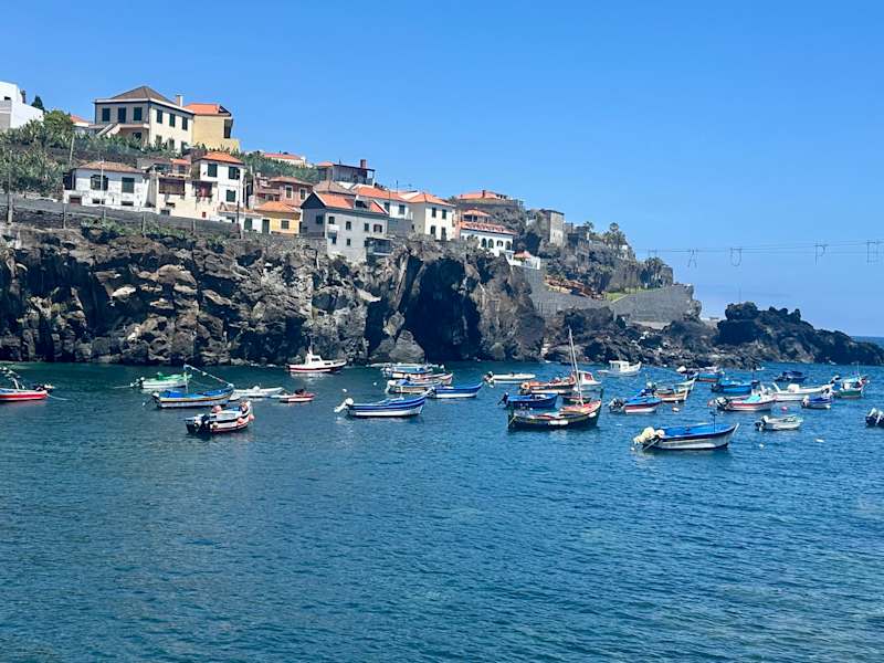 Kommt man von der Praia Formosa, so führt die Strandpromenade von Camara de Lobos vorbei an der Werft von Camara de Lobos in den Hafen eben dieses kleinen Fischerortes. Als wir im Januar hier waren, war es recht stürmisch und der Weg entpuppte sich als sehr interessant, da der Atlantik mit aller Wucht gegen die Küste rollte und sich die am Strand/Küste brechenden Wellen an den Felsen in teils riesigen Fontänen hoch geschossen sind.