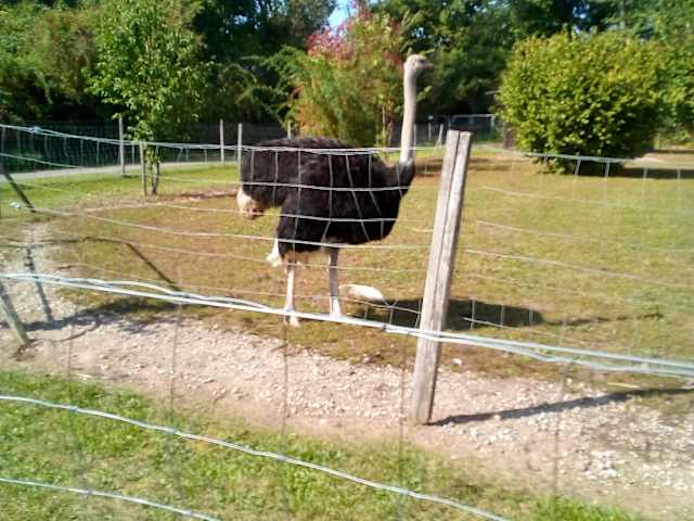 Eher durch Zufall stießen wir beim Besuch des Reptiliums in Landau auf den Flyer der Straußenfarm Mhou in Rülzheim. Nach ca. 10-15 Minuten Fahrt mit dem Auto ist die Farm leicht zu erreichen. Straußen-Kindergarten und Zuchttieraußengehege kann man umsonst anschauen. Im Farmladen sind die teuren, aber wirklich schönen Produkte der Farm zu kaufen. (Handtaschen aus Straußenleder, Staubwedel aus Straußenfedern, Fleisch oder kunstvoll verarbeitete Eier u. v.m.) Führungen kosten ab 2€. Wirklich toll die großen Laufvögel in heimatlicher Kulisse zu betrachten und zu beobachten. Wir konnten Strauße sogar bei ihrem Balztanz beobachten.