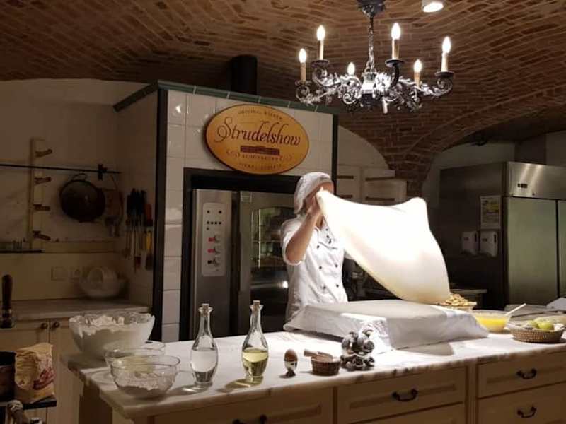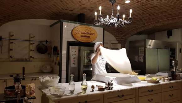 Wer im Schloss Schönbrunn ist, der sollte im Keller des Schloss Cafes unbdingt die Strudel Show besuchen. Hier wird gezeigt wie aus Mehl der besagte Strudel entsteht, bis er fast Tischdecken gross und fast durchsichtig ist. Zum Abschluss kann man das Ergebnis bei einer guten Tasse Kaffee im Cafe probieren.