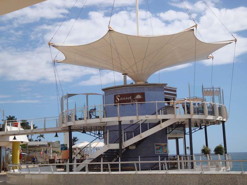 Diese Café ist im oberen Stockwerk des Gebäudes zu finden, an der Playa Meloneras, also an einer schlechten Lage. Da hat man aber eine grandiose Aussicht, besonders wenn es um den Sonnenuntergang geht. Gäste gibt es dort bestimmt wegen der guten Aussicht. Man kann dort sicher etwas trinken, jedoch sollte man Vorsicht walten lassen, die in der Karte abgebildeten Cocktails werden nicht fachgerecht hergestellt. Sie schmecken nicht so frisch wie sie schmecken sollten, ganz zu schweigen von Cocktails die mehrfarbig hergestellt werden. Die junge Dame müßte dringend einen Kurs mitmachen.