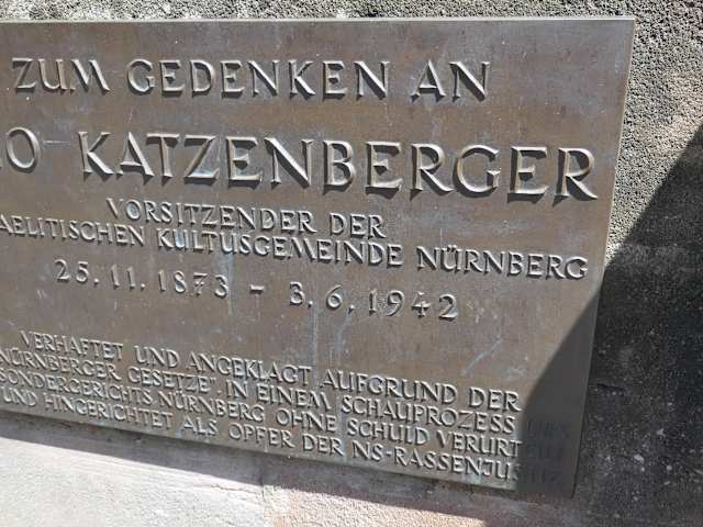 In Nürnberg findet man am Hans-Sachs-Platz / Ecke Leo-Katzenberger-Weg, unmittelbar bei der Spitalbrücke, das Synagogendenkmal und das Leo-Katzenberger-Denkmal. Wenn man am Hans-Sachs-Platz ist, so sollte man auch einmal zu diesen beiden Denkmalen gehen, dabei sollte man aber auch an die Verbrechen denken, welche unter dem NAZI-Regime geschahen.